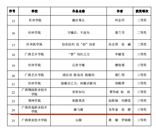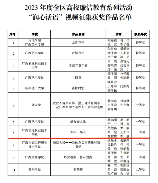 近日,自治区党委教育工委公布了2023年度全区高校廉洁教育系列活动评选结果,taptap官网2项作品入选并获奖。其中莫敏燕、尹颖、张堃、王杰玮、贾惟贺、李晨等共同拍摄的《那年·那人》获全区高校廉洁教育系列活动“润心话语”视频征集一等奖,吴华高、张静共同设计的《廉与腐》获全区高校廉洁教育系列活动“清心妙语”创意征集三等奖。