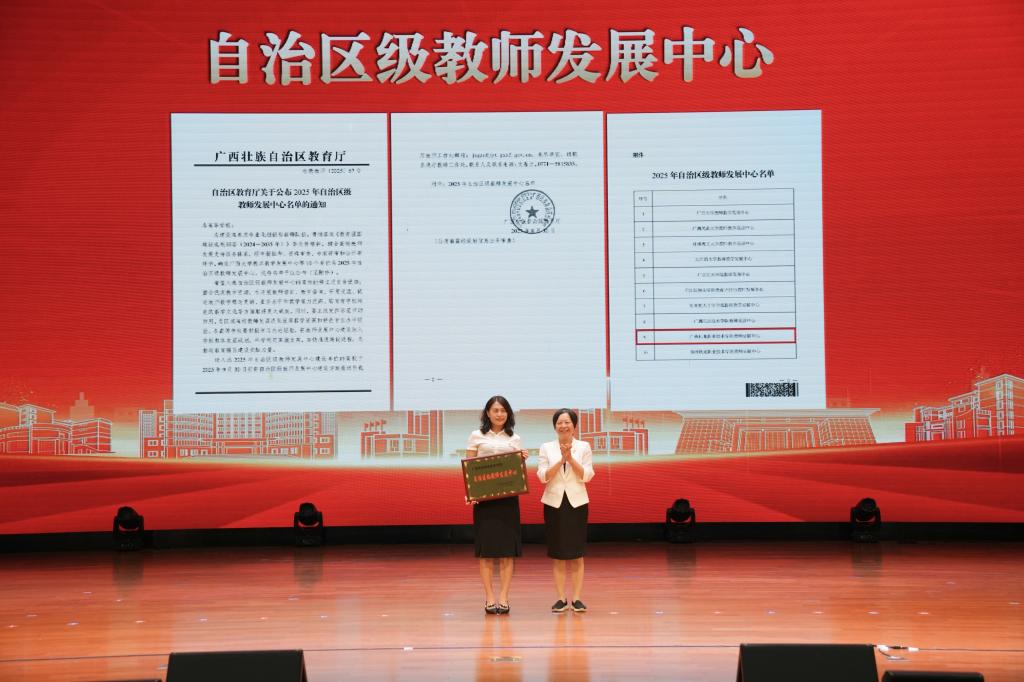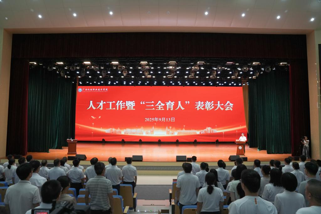 9月13日下午,学校在弘毅楼大礼堂召开2025年人才工作暨“三全育人”表彰大会,深入学习贯彻习近平总书记关于做好新时代人才工作的重要指示精神和对广西工作论述的重要要求,全面落实中央和自治区党委有关人才工作部署,系统总结学校人才工作成绩与经验,分析面临的新形势新任务,部署今后一个时期的重点举措,动员全校上下统一思想、凝聚共识、坚定信心、鼓足干劲,开创学校人才工作新局面。学校党委书记黄小敬出席会议并讲话,学校领导程云燕、黎盛寓、刘捷、黄振宣、林胜,校长助理秦培林出席。全体教职员工、荣休教师和学生代表参加大会。大会由学校党委副书记、校长吴世先主持。