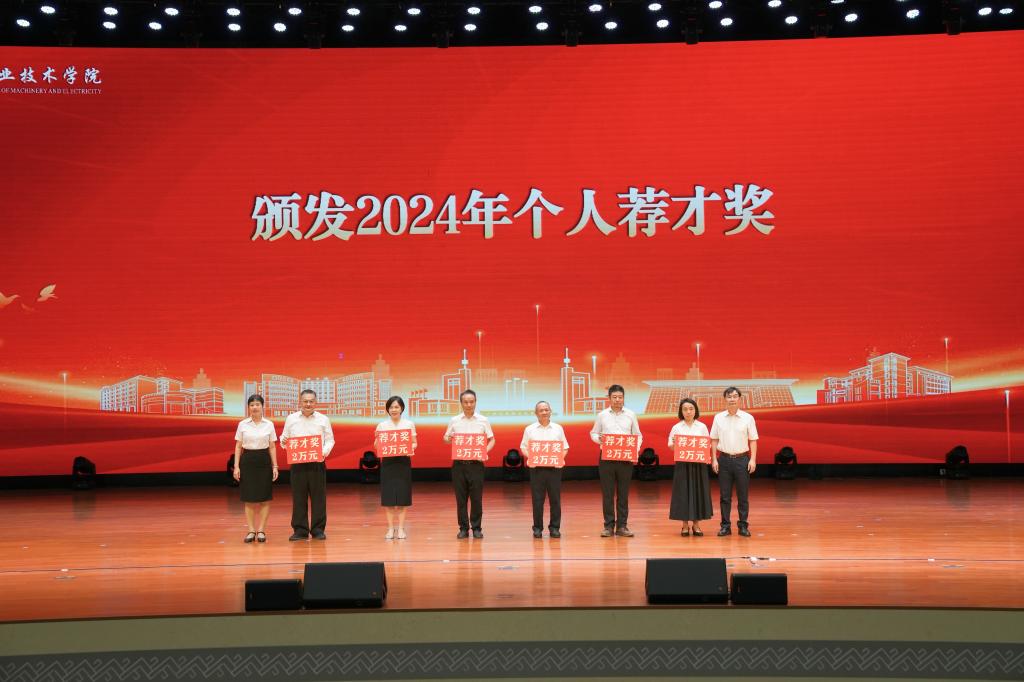 学校2025年“三全育人”先进个人代表陶彬、机电最美教师代表吕金亚、广西工匠代表熊治文、博士代表杜英俊;先进集体代表、人工智能技术学院院长张泽民;2024年集体荐才奖代表、绿色建筑与低碳技术学院党委书记罗满,通识教育学院党委书记、院长黄金来;新入职教师代表蓝婷分别作了交流发言。