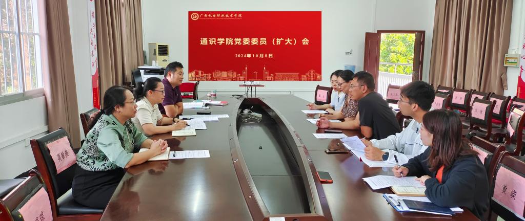 2024年10月8日17:00,通识教育学院在学院三楼会议室召开了党委委员(扩大)会。通识教育学院党委副书记梁瑾同志主持会议,学院领导莫敏燕、卓倪,党支部委员以及组织员参加会议。