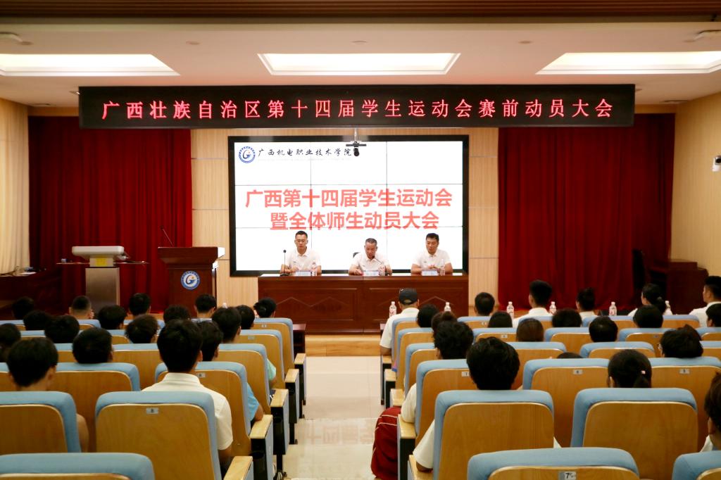 动员大会上,黄金来发表讲话。他强调,广西学生运动会作为区内规格最高、规模最大、影响最广的学生体育盛会,是展示学子竞技水平与精神风貌的重要平台。他寄语全体运动员弘扬“更高、更快、更强——更团结”的奥林匹克精神,践行“自强弘毅、知行合一”的校训,以坚韧毅力挑战自我,充分展现机电学子朝气蓬勃的青春风采。
