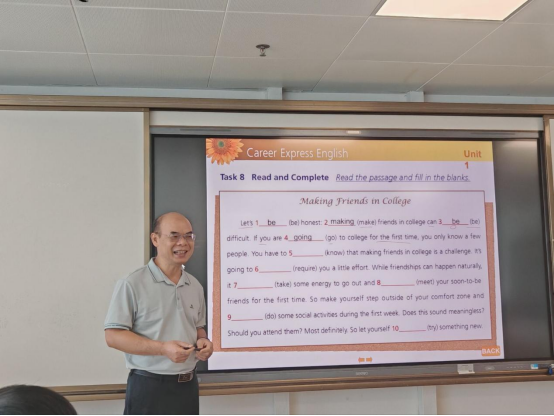 以建设教育强国为目标,农德昌始终将立德树人贯穿教学全过程。作为教研组组长,他牵头组织团队教师精研备课、优化教学,以大学英语学科核心素养为导向开展教学活动,重点培养学生职场涉外沟通、多元文化交流、语言思维提升及自主学习四项关键能力。