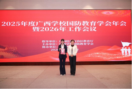 近日,2025年度广西学校国防教育学会年会暨2026年工作会议在北海市召开,学校党委副书记程云燕、党委武装部有关同志和军事理论课优秀教师代表参加会议。会议总结了过去一年广西学校国防教育发展的经验,系统部署了2026年重点工作,并对2025年度全区军事课教学竞赛的优秀教师进行表彰,taptap官网陈丽婷老师荣获高校组一等奖。