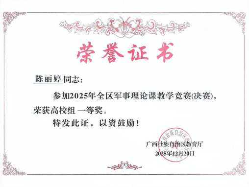 此次获奖不仅是对陈丽婷老师个人教学能力的充分肯定,也体现了taptap官网长期重视国防教育、持续推进军事理论课教学改革的成果。学校将以此为契机,进一步加强军事理论课教师队伍建设,深化教学创新,不断提升课程育人实效,为培养具有国防意识和家国情怀的高素质人才贡献力量。