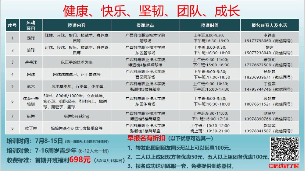 机电体育暑期培训班