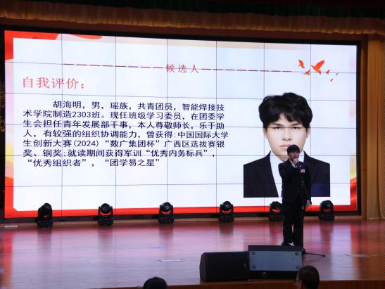 大会在庄严的国歌中拉开序幕。首先,智能焊接技术学院学生第一党支部书记王胜兰在致辞中肯定了上一届团委的工作成效,并向学院团委和全院团员青年提出三点希望:一是坚定理想信念,提高政治站位,坚决抵制各种错误思潮和不良风气的影响;二是勇担时代使命,练就过硬本领,深入学习专业知识,勇于实践创新;三是打造特色共青团项目,服务学生成长成才,主动适应新时代团员青年的新变化、新需求。