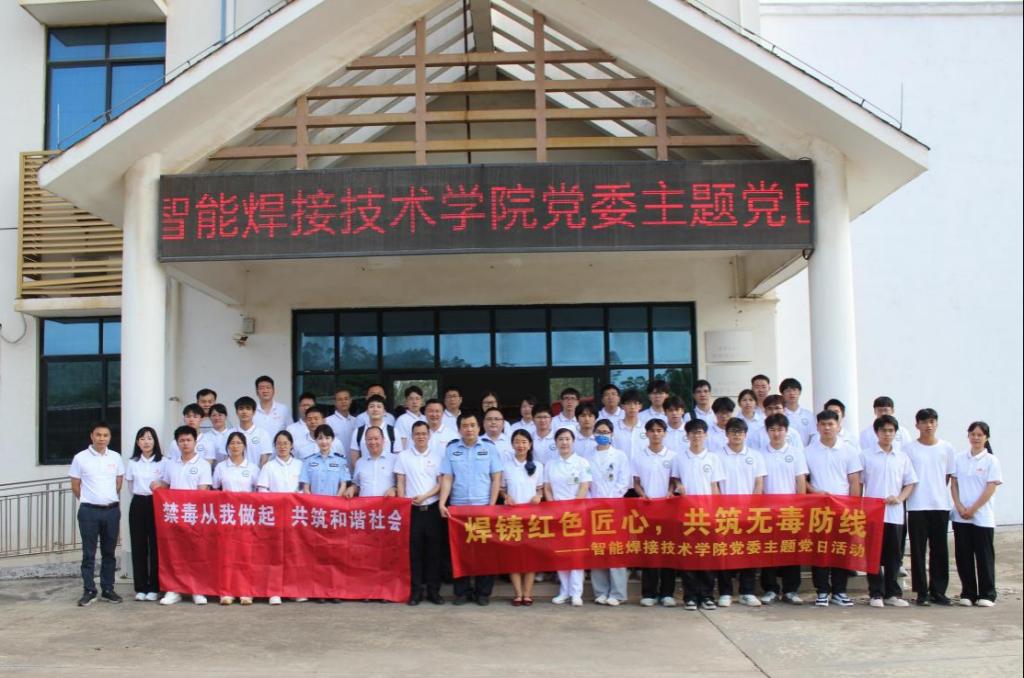 2025年5月13日,智能焊接技术学院党委组织师生党员、入党积极分子共47人赴南宁市戒毒所开展“焊铸红色匠心,共筑无毒防线”主题党日活动,深化党建共建,强化禁毒防艾教育。