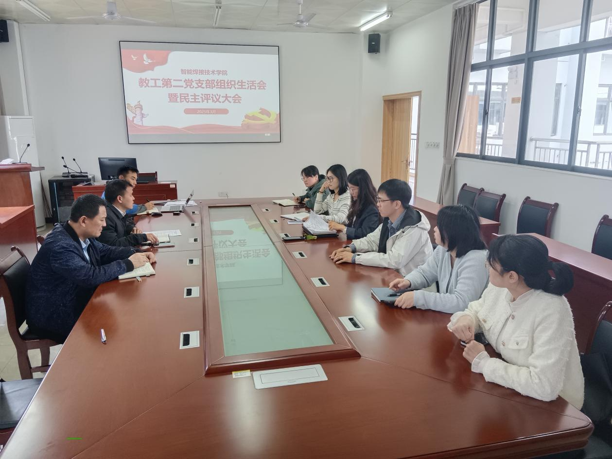 3月20日,智能焊接技术学院教工第二党支部紧扣“凝心铸魂强党性,实干担当建新功”主题,召开2024年度组织生活会暨民主评议党员大会。支部10名党员全员参会,学院党委副书记文小满列席指导。