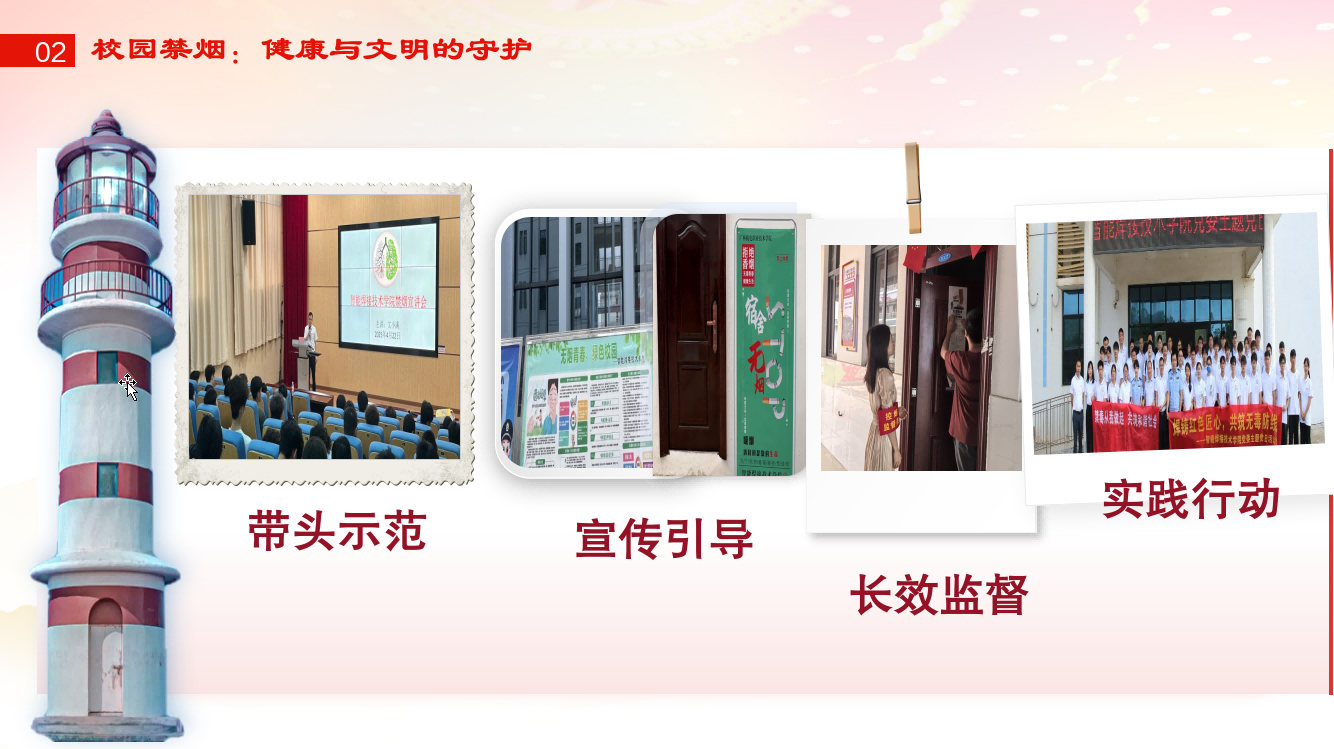 党课第二部分,巧妙地将历史镜鉴投射到当下的具体实践——校园禁烟工作。主讲人强调,建设无烟校园,保障师生健康,营造清新育人环境,是落实立德树人根本任务的内在要求,也是作风建设在基层的具体体现。