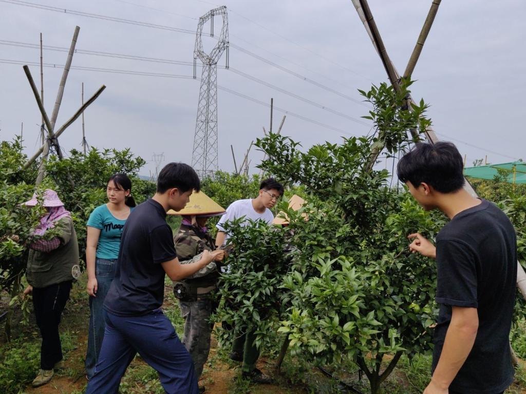 2025年6月4日,由指导老师江健老师带队,柑香先锋队覃业硕、廖立伟、黄洪宇、廖雨洁4人,携带新一代柑橘开皮机深入武鸣区仙湖镇坡利柑橘种植基地调研。在与果农面对面交流中,通过技术演示与实操指导,助力果农提升加工效率,推动产业升级。