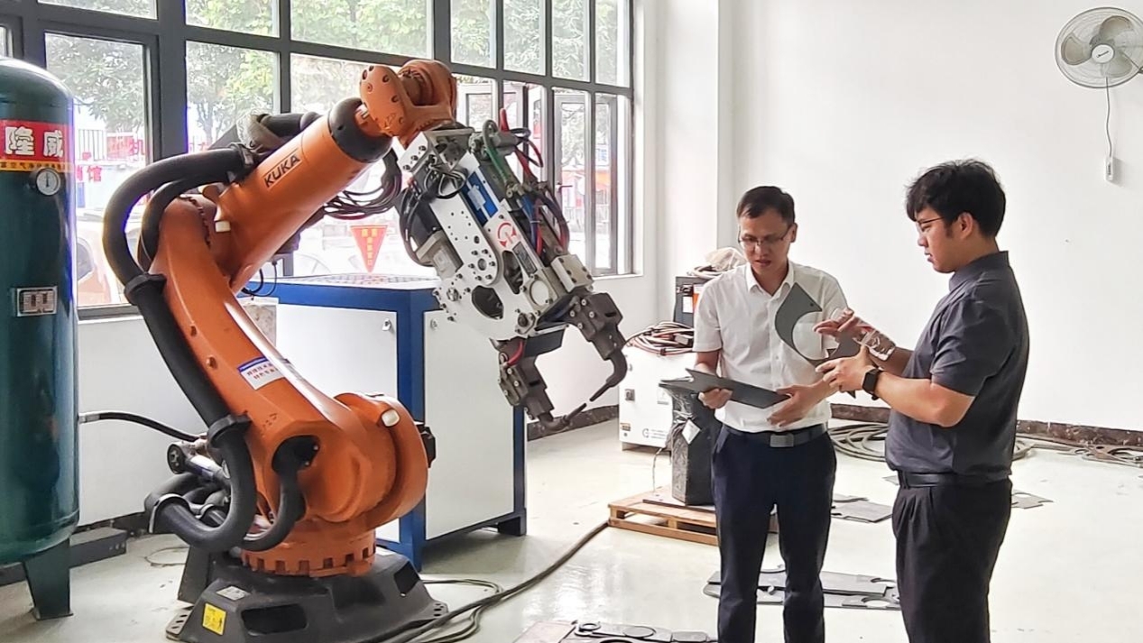 在文书记的陪同下,企业团队实地参观了学院智能焊接技术实训中心和智能制造技术应用中心。文书记向企业团队负责人详细介绍了学院在专业建设和人才培养等方面的基本情况,展示了学院在教学实践中取得的突出成果及特色方法。企业方对学院人才培养模式与企业用人需求的精准对接表示高度认可,强调智能焊接技术学院的学生专业技能扎实、实践能力强,符合企业发展需求,丰富的人才资源为后续校企合作奠定坚实基础。